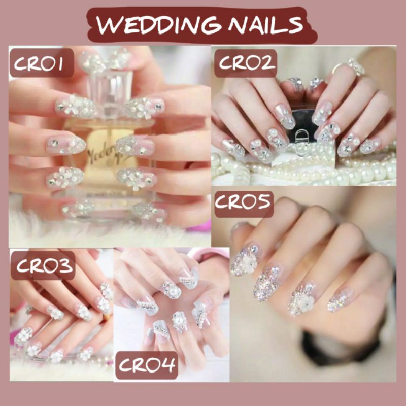Ready Jogja Bisa Cod Kuku Palsu 3d Wedding Nails Square Glitter Flower Nail Art 24 Kuku Shopee Indonesia