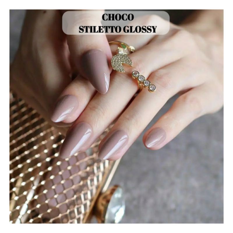 Stiletto Glossy Choco 24 Fake Nails Nail Art Wedding Nail Kuku Palsu Cantik Pesta Jogja Shopee Indonesia